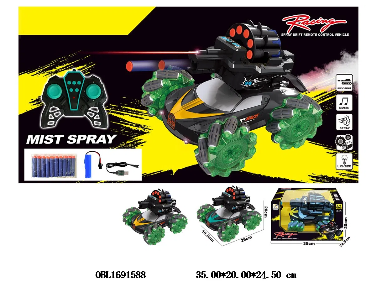 横向遥控车带灯光音乐喷雾漂移 可发射软弹 配USB线 车身3.7V锂电池包电 遥控器2*AA不包电 2.4G频率 3色混装