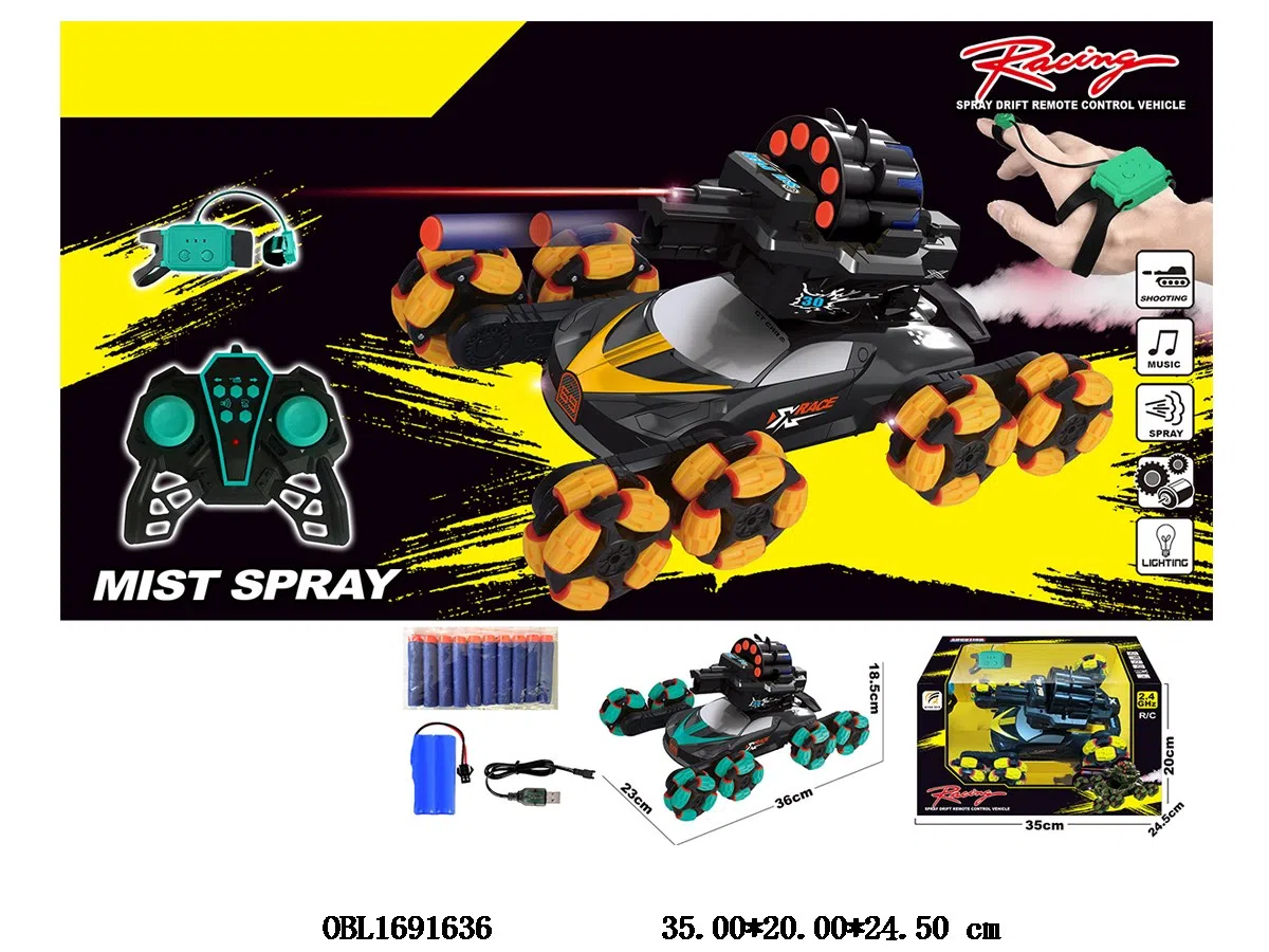 遥控车带灯光音乐喷雾漂移 可发射软弹 一键变形 配USB线 车身7.4V锂电池包电 遥控器2*AA不包电 手表遥控1*CR2032包电 2.4G频率 2色混装