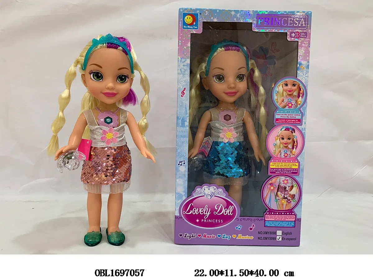 14寸实身芭芘娃娃带灯光音乐 西文IC 3*AA不包电 衣服2款混装
