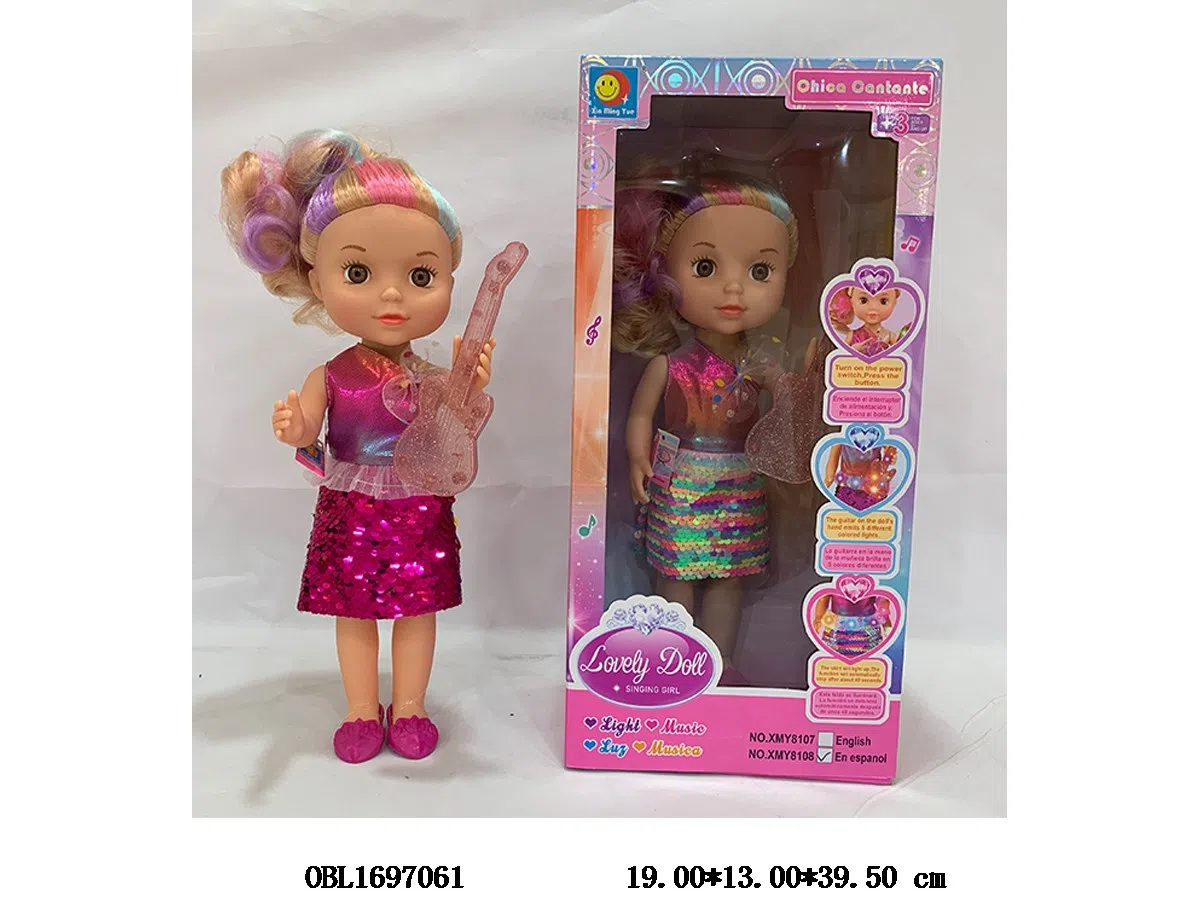 首页 > 带IC芭芘公仔 > 14寸实身芭芘娃娃带灯光音乐 西文IC 3*AA不包电 衣服3款混装