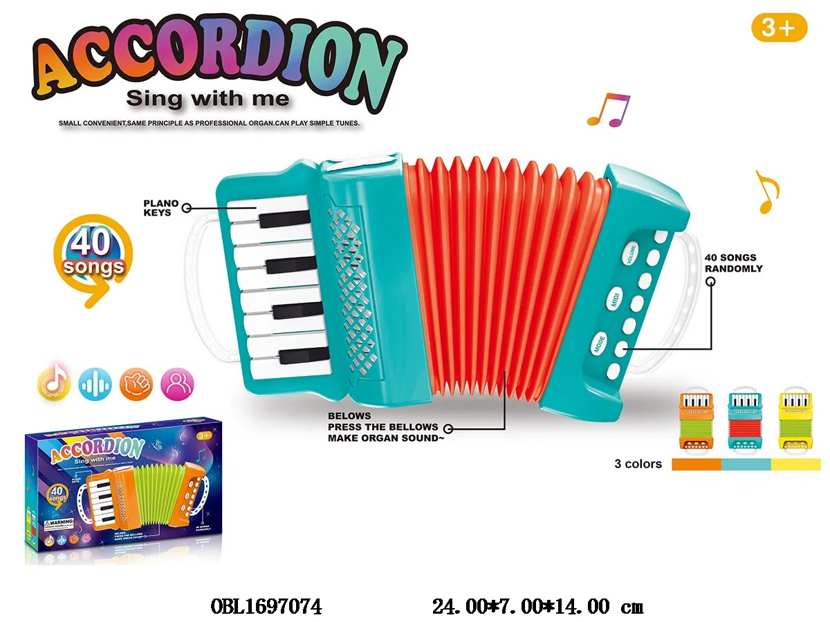 首页 > 手风琴 > 手风琴带音乐 2*AA不包电 3色混装