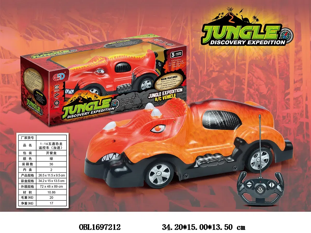 1:16五通恐龙遥控车 车身4*AA不包电 遥控2*AA不包电 27频率