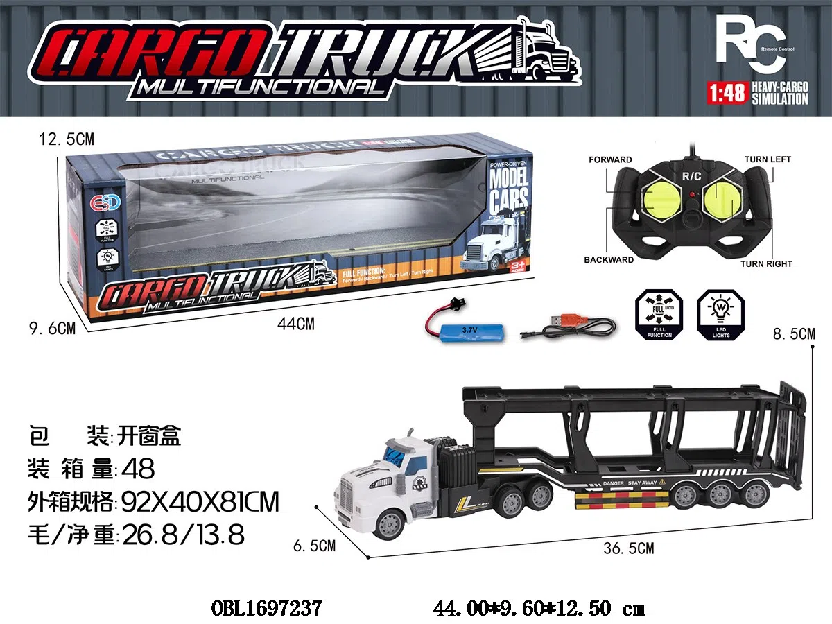 1:48四通遥控拖车带灯光 配USB线 车身3.7V电池包电 遥控2*AA不包电 27频率
