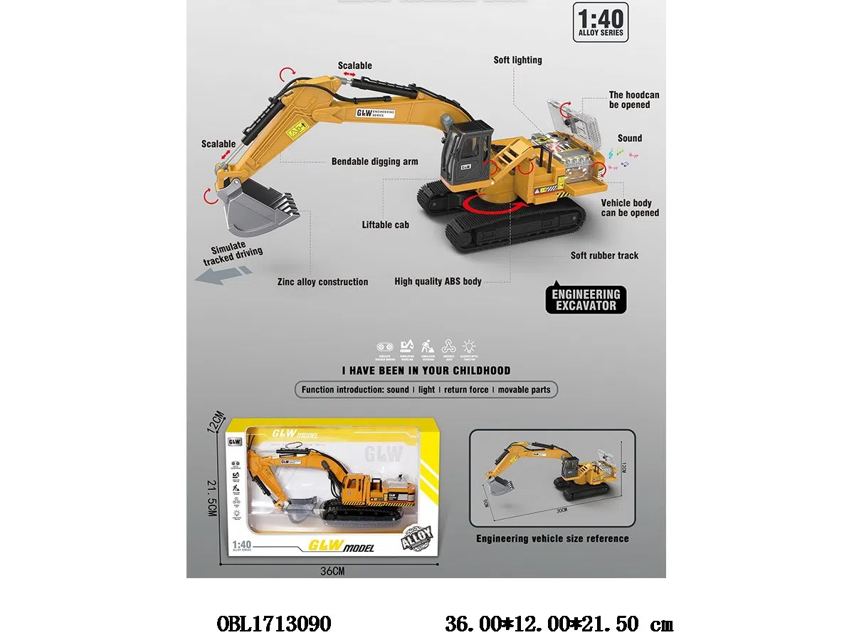 1:40合金滑行挖掘机带灯光音乐 3*AG13包电