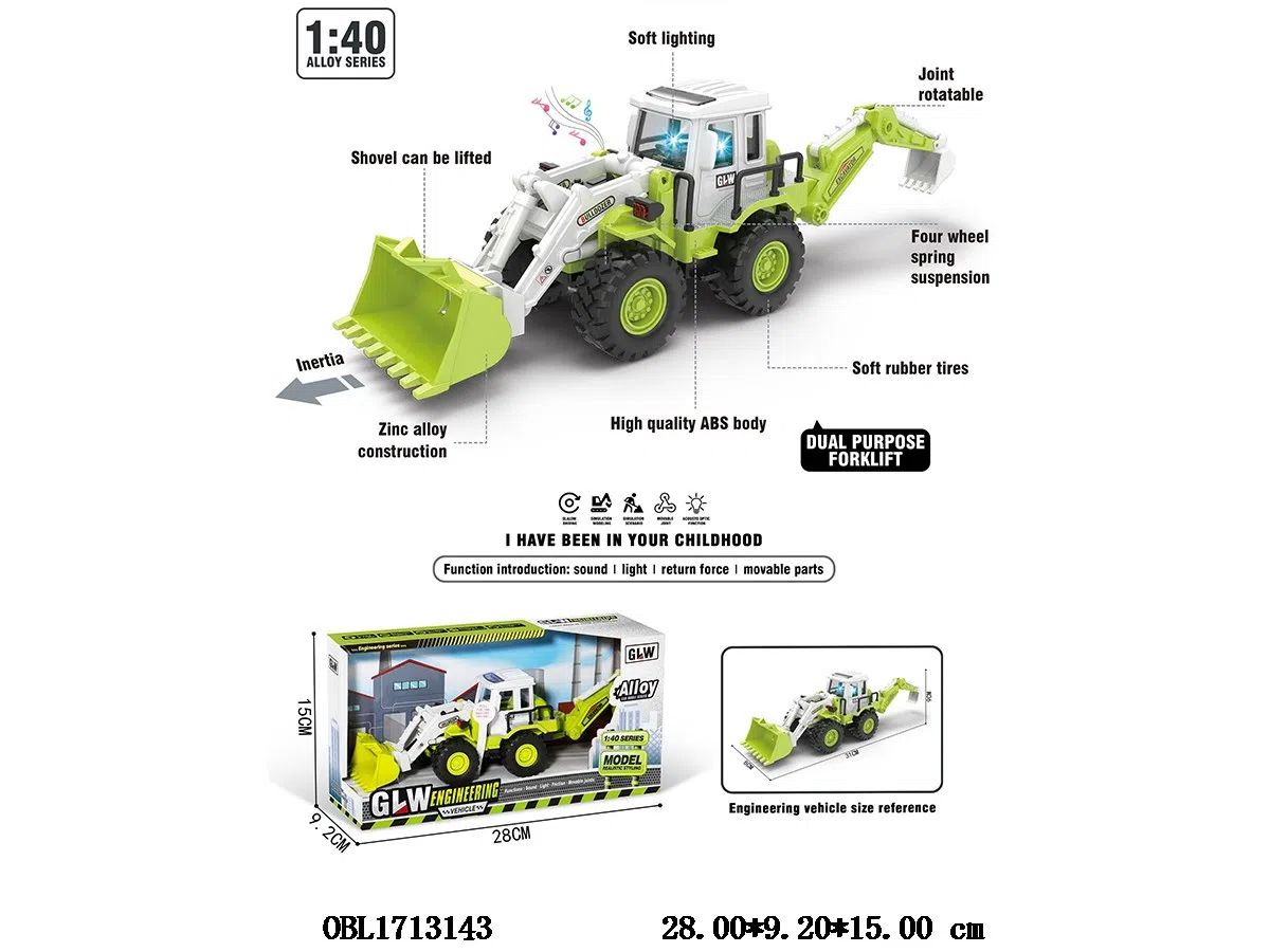 1:40合金惯性两用工程车带灯光音乐 3*AG13包电