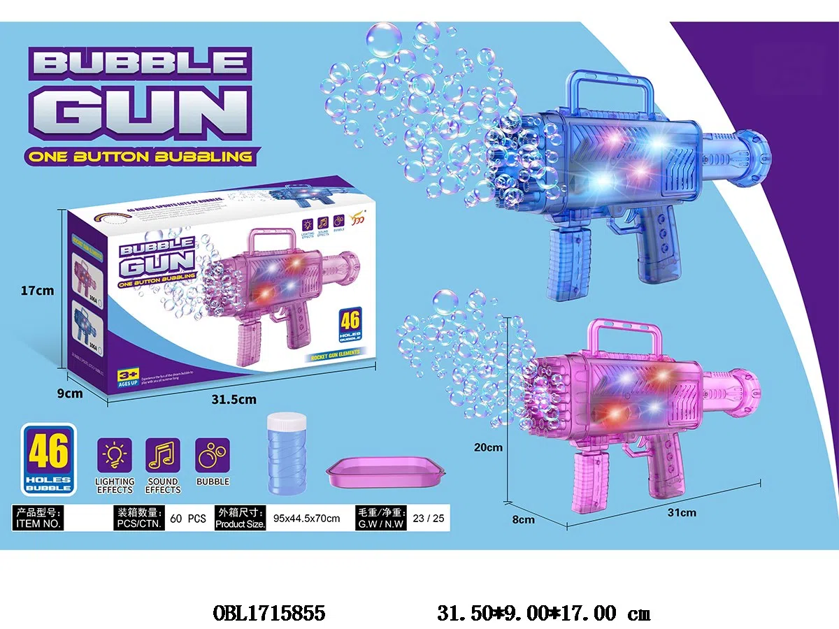 46孔火箭筒电动泡泡枪套装带灯光音乐 4*AA无包电 2色混装