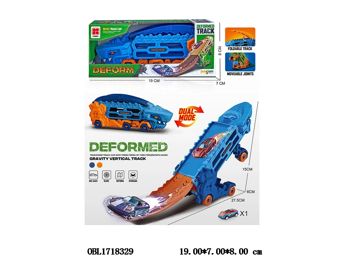 惯性变形鲨鱼收纳轨道车套装 1辆惯性金属车
