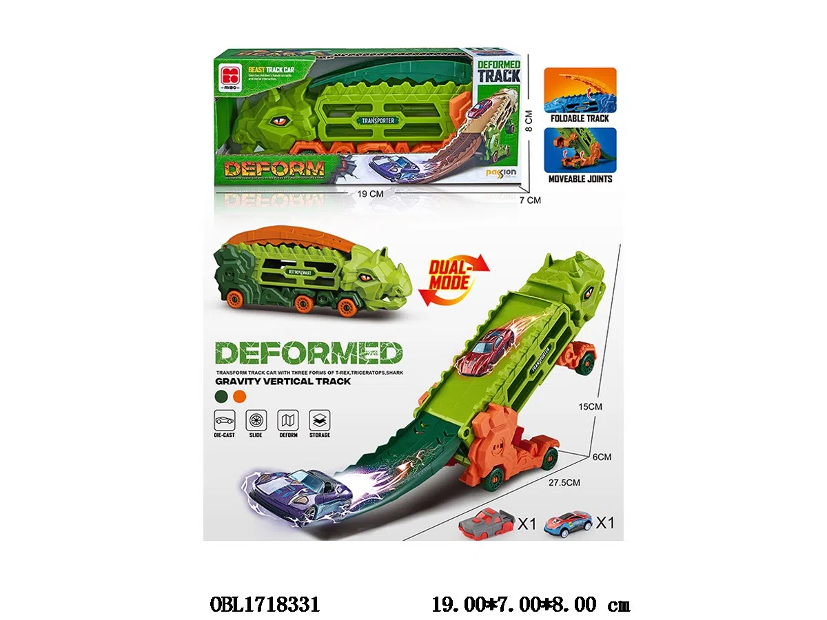惯性变形三角龙收纳轨道车套装 1辆惯性金属车