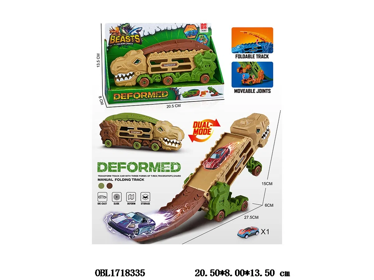 惯性变形霸王龙收纳轨道车套装 1辆惯性金属车
