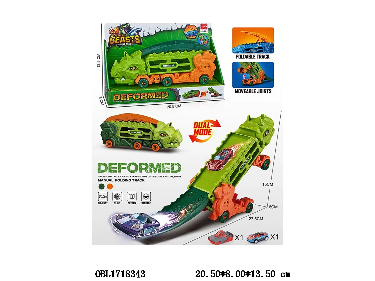 惯性变形三角龙收纳轨道车套装 1辆惯性金属车