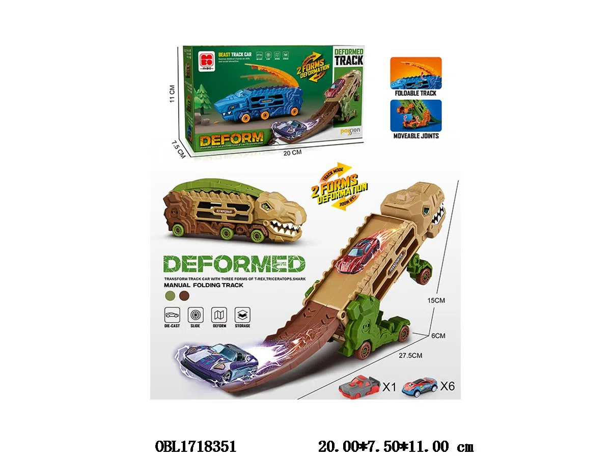惯性变形霸王龙收纳轨道车套装 6辆惯性金属车