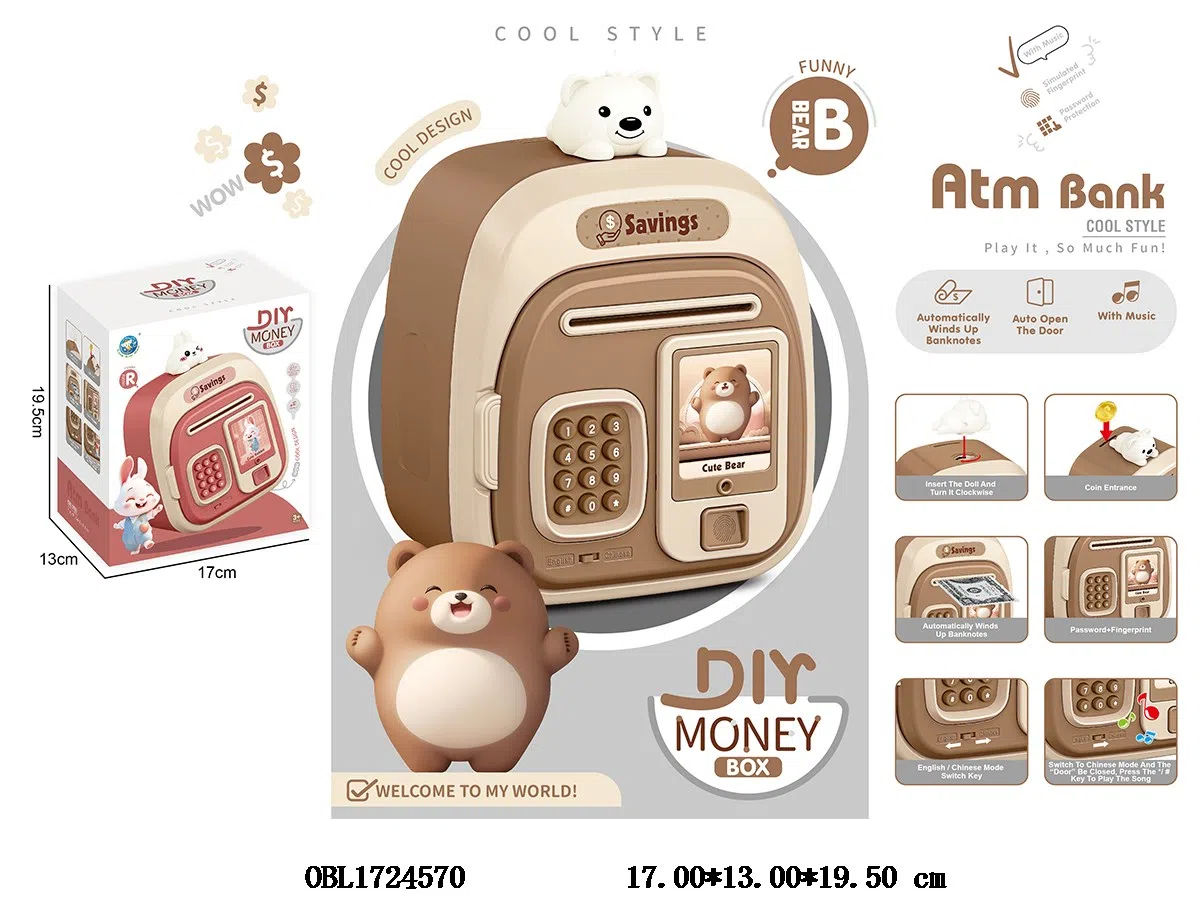 萌宠智能指纹存钱柜带音乐 2色混装 3*AA不包电