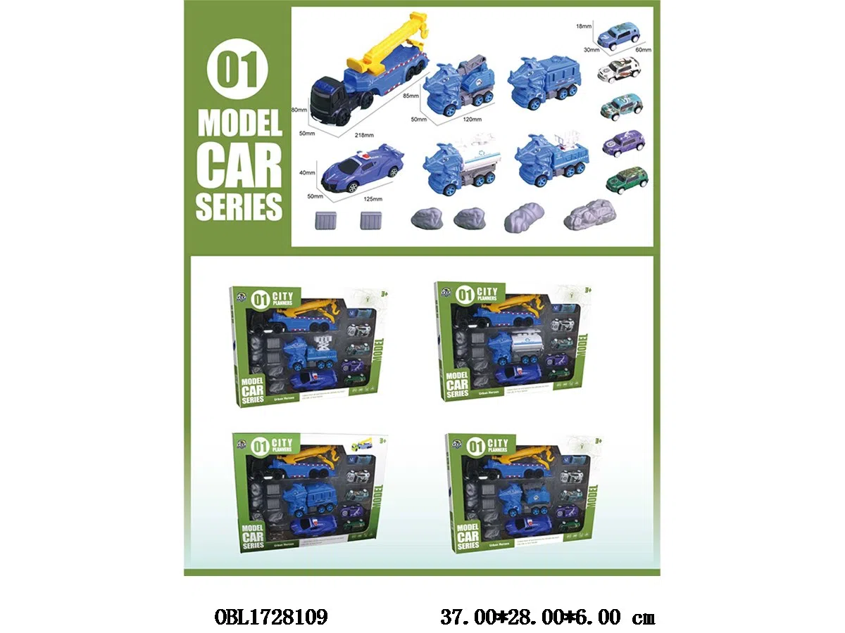 3只装惯性拖车/恐龙车/警车配5只轻合金滑行小车 4款混装