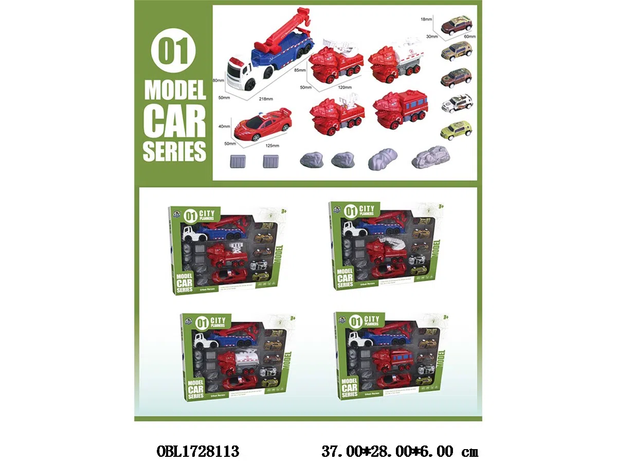 3只装惯性拖车/恐龙车/警车配5只轻合金滑行小车 4款混装