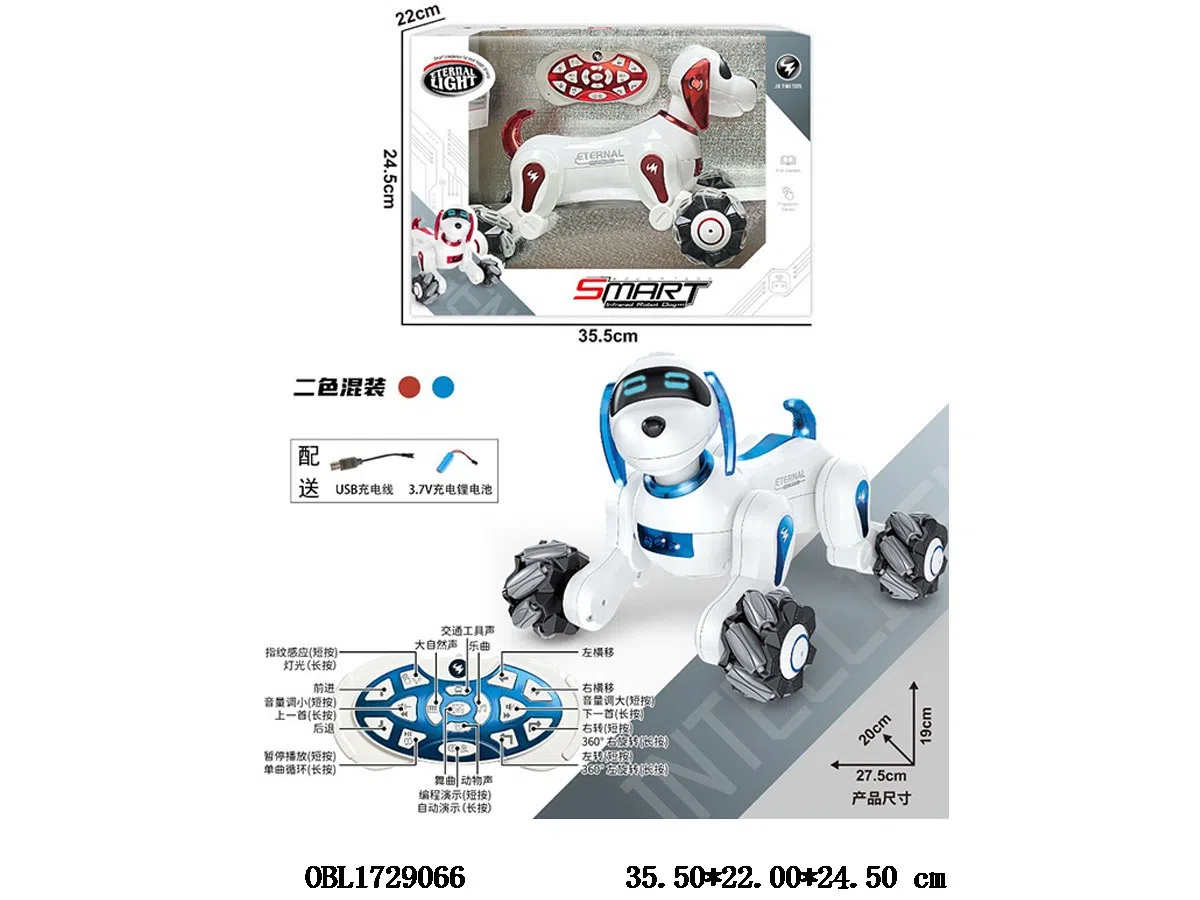 首页 > 遥控动物 > 红外线21通遥控智能指纹感应机器狗配USB线 机身3.7V包电 遥控器2*AA不包电 2色混装