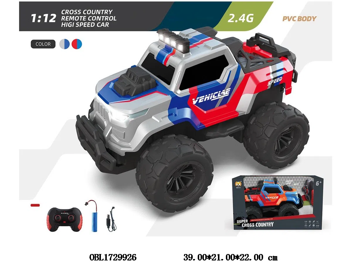 首页 > 遥控车 > 1:12遥控越野车带灯光 配USB线 车身3.7V锂电池包电 遥控器2AA不包电 2.4G频率 2色混装