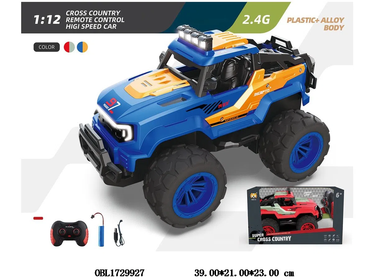 首页 > 遥控车 > 1:12遥控越野车带灯光 配USB线 车身3.7V锂电池包电 遥控器2AA不包电 2.4G频率 2色混装