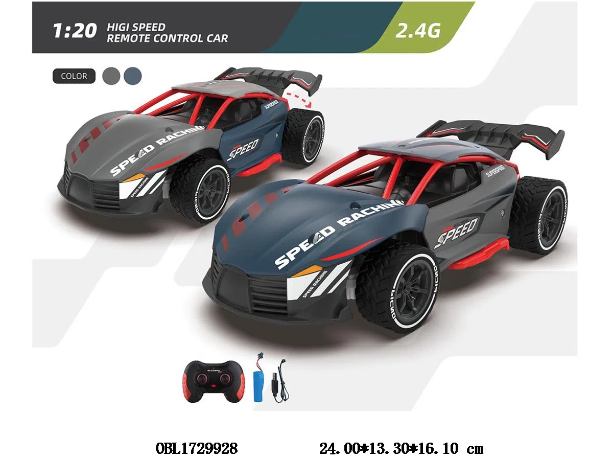 1:20遥控高速车 配USB线 车身3.7V锂电池包电 遥控器2AA不包电 2.4G频率 2色混装