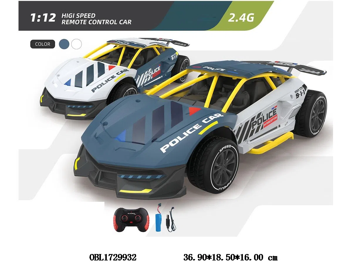1:12遥控警车 配USB线 车身3.7V锂电池包电 遥控器2AA不包电 2.4G频率 2色混装