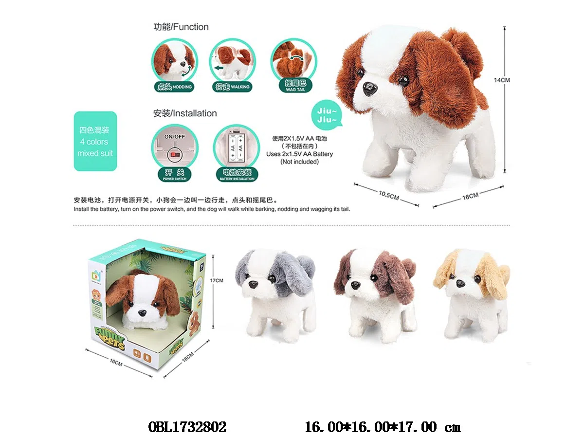 电动毛绒小狗带声音 点头/摇尾 2*AA不包电 4色混装