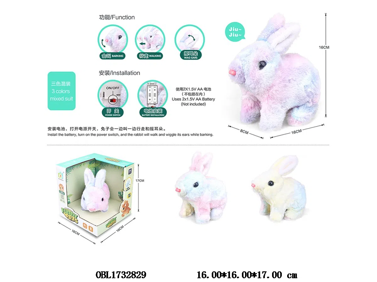 首页 > 电动动物 > 电动毛绒彩色兔带声音 摇耳朵 2*AA不包电 3色混装