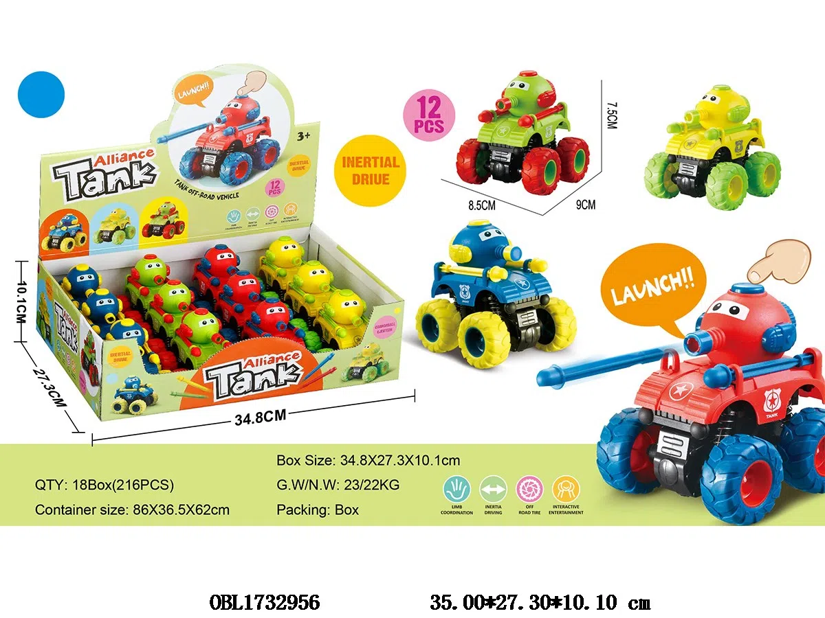 双惯性特技坦克 可发射子弹 12只装一展示盒 4色混装