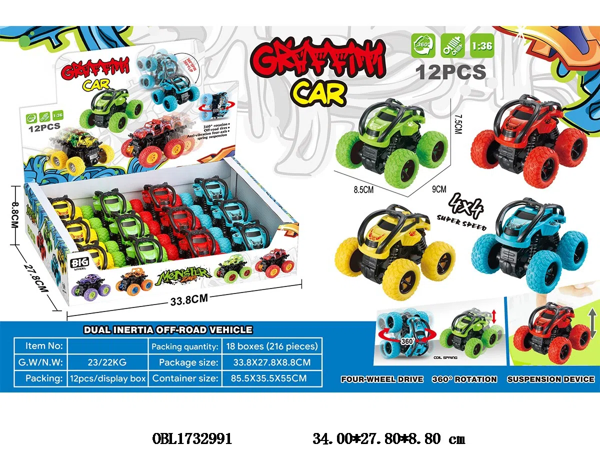 双惯性特技翻滚车 12只装一展示盒 4色混装