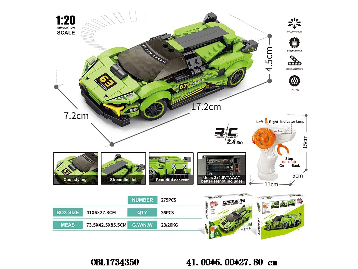 首页 > 普通积木 > 益智积木 遥控仿真兰博基尼 275PCS 车身3*AAA不包电 遥控器2*AA不包电 2.4G