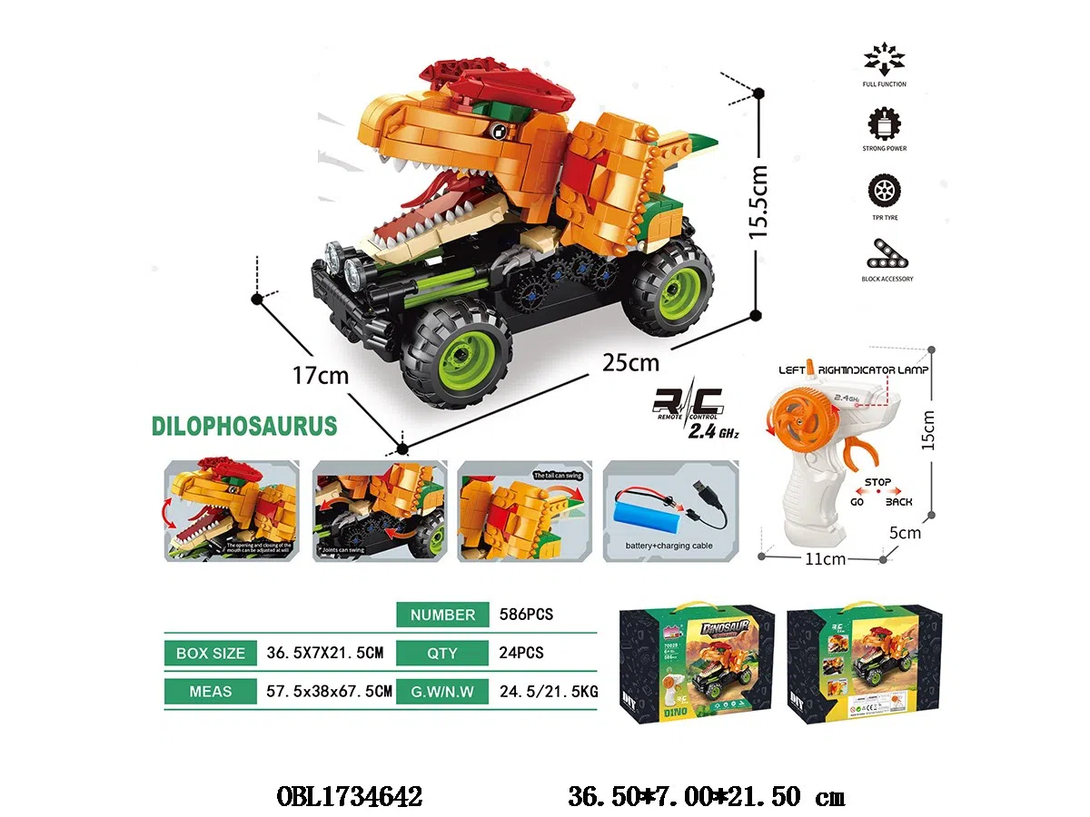 益智积木 双脊龙遥控车配USB线 车身3.7V锂电池包电 遥控2*AA不包电 2.4G频率 586PCS