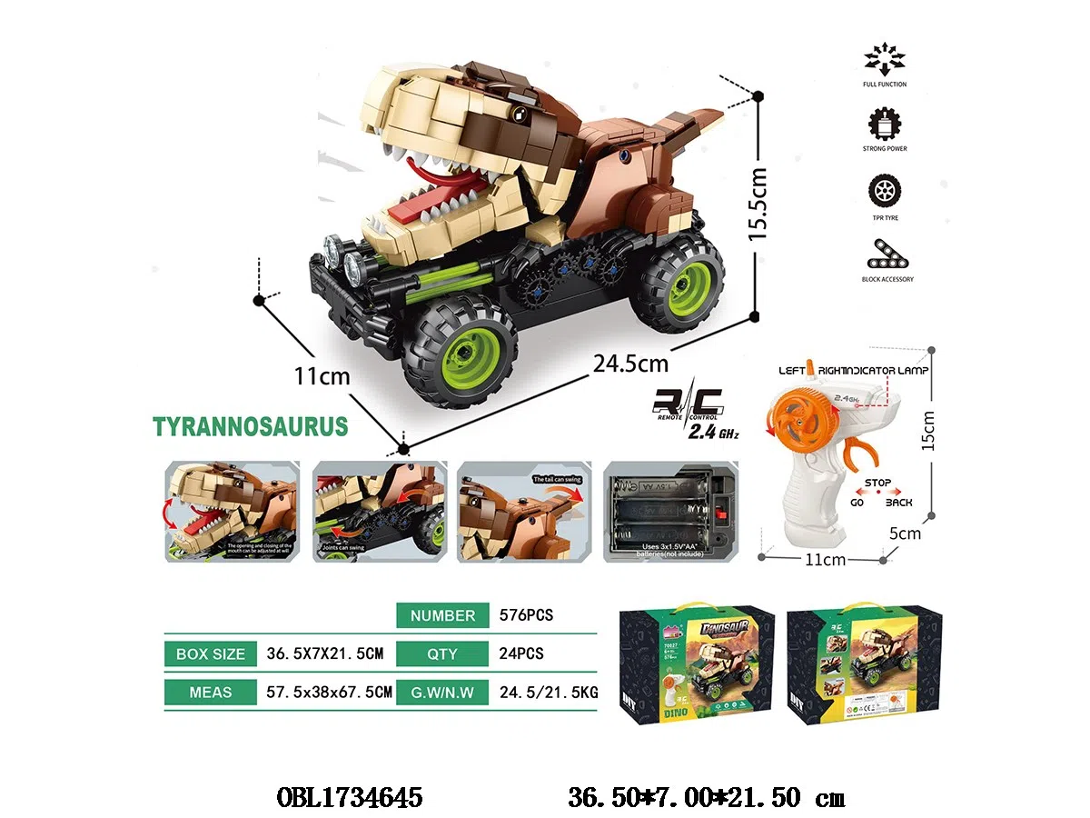 益智积木 霸王龙遥控车 车身3*AA不包电 遥控2*AA不包电 2.4G频率 576PCS