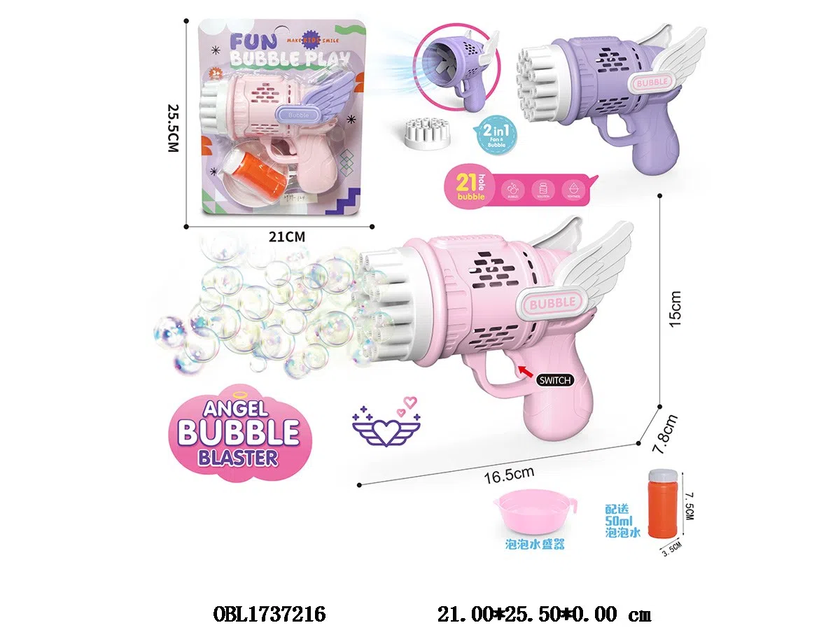 21孔电动天使泡泡枪 配1瓶50ML泡泡水 2色混装