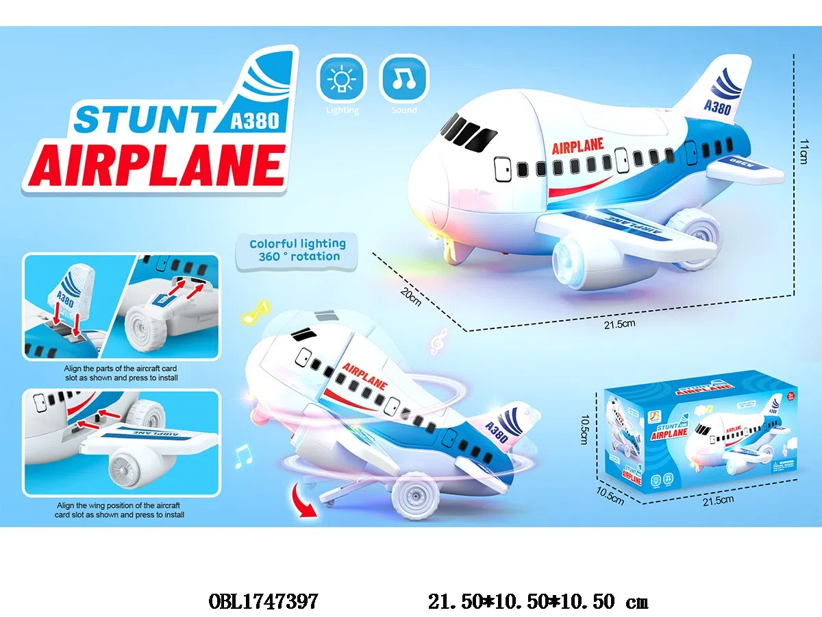首页 > 电动飞机 > 电动特技旋转飞机带灯光音乐 3*AA不包电