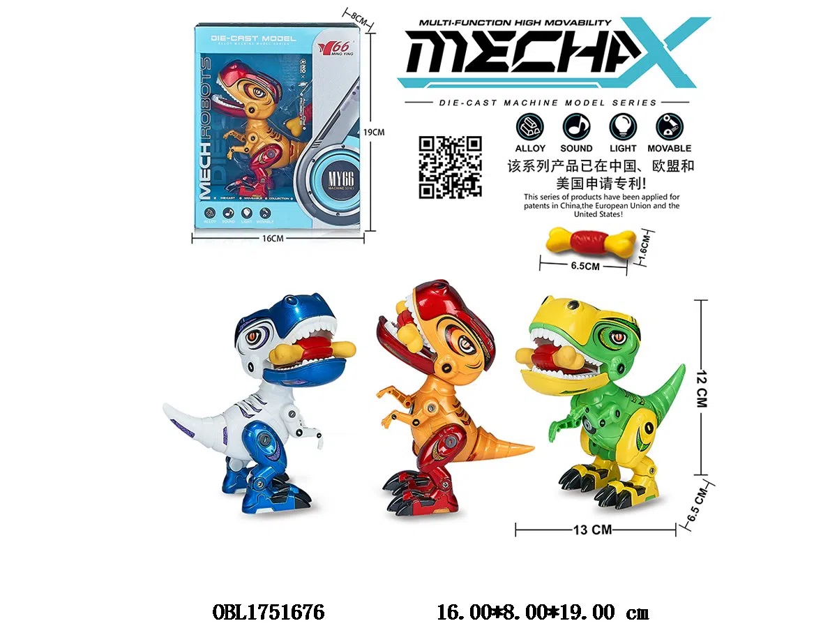 合金萨克机器霸王龙套装带灯光声音 头部按压 触摸感应 3色混装 3*AG13包电 擦边亚古兽
