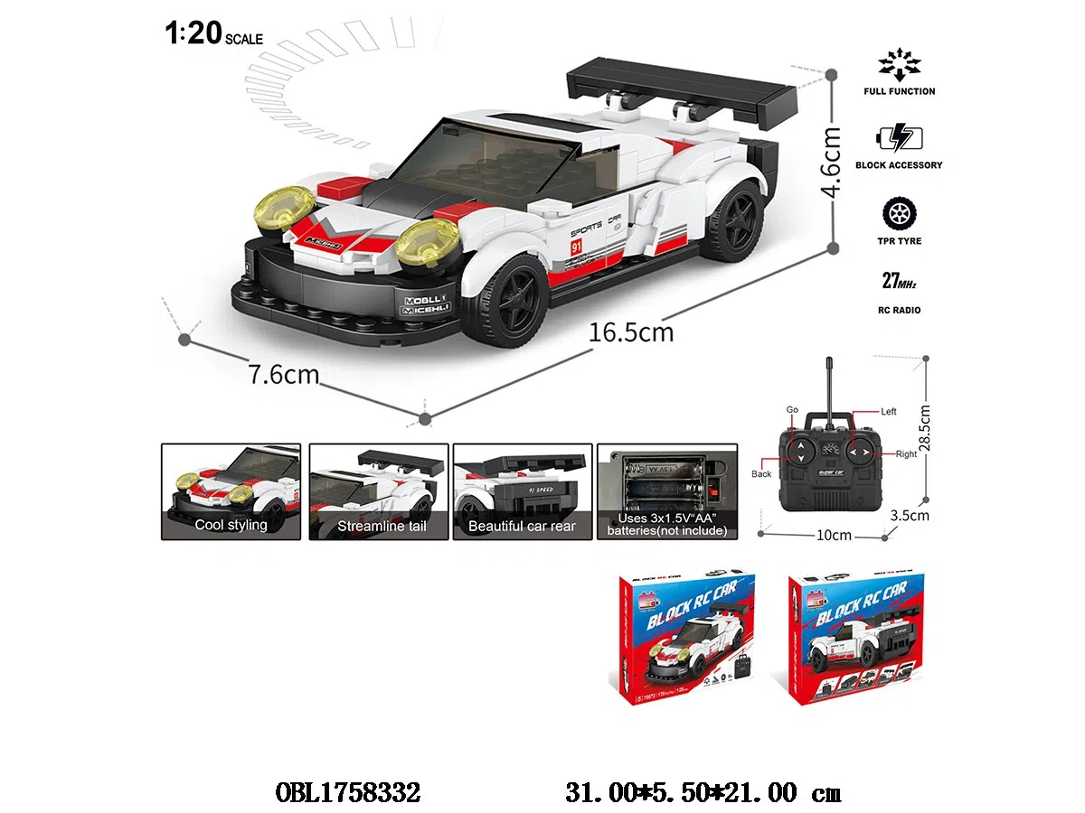 益智积木 遥控车 车身3*AA不包电 遥控器2*AA不包电 27频率 178PCS
