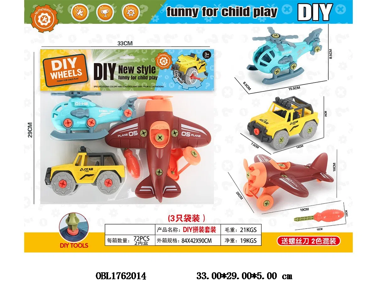 3只装DIY拼装车/飞机套装 螺丝刀2色混装