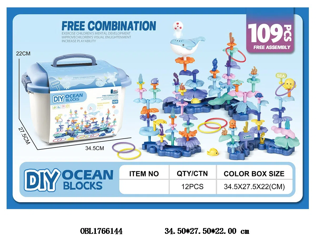 首页 > 普通积木 > 益智积木DIY海洋插花 109PCS 鲸鱼可喷气让球悬浮 3.7V锂电池 配USB充电线 收纳桶
