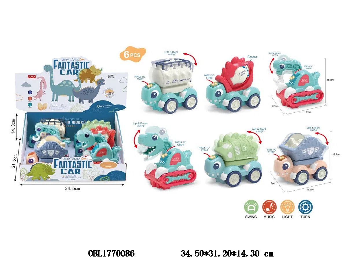 电动恐龙车带灯光声音 2*AAA无包电 6款混装 6只装1展示盒
