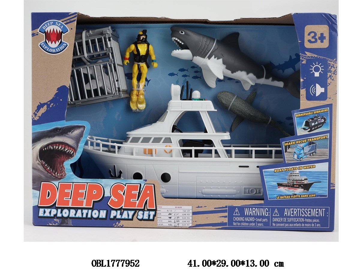 捕鲨鱼船套装带灯光声音 3*AG13包电
