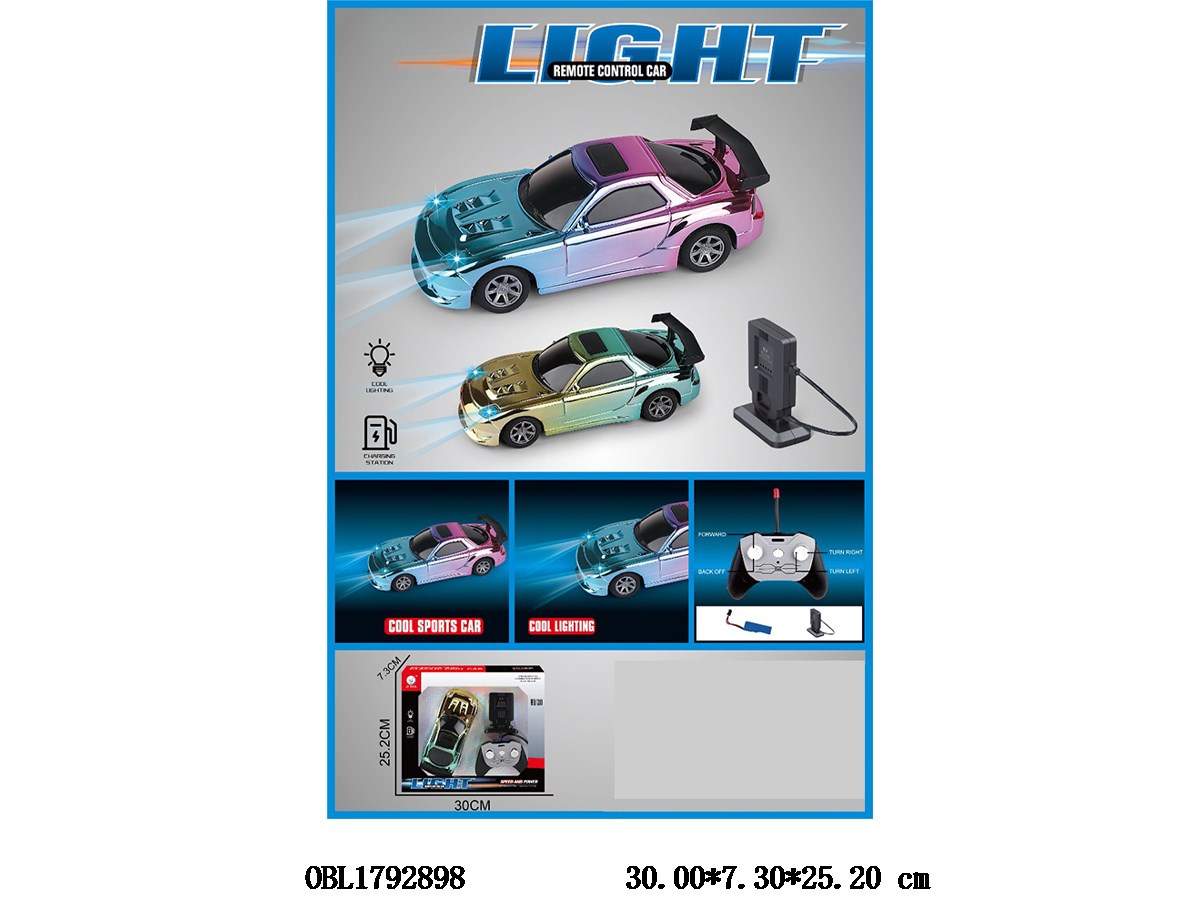 4通遥控车带灯光喷雾配USB充电桩 车身3.7V包电 遥控器2*AA不包电 2色混装 27频率