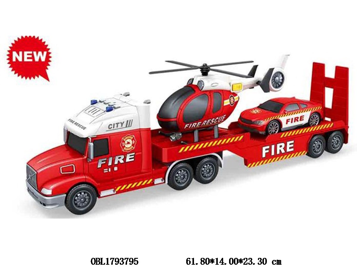 惯性消防运输车带灯光声音 载飞机/消防车仔 6*AG13包电