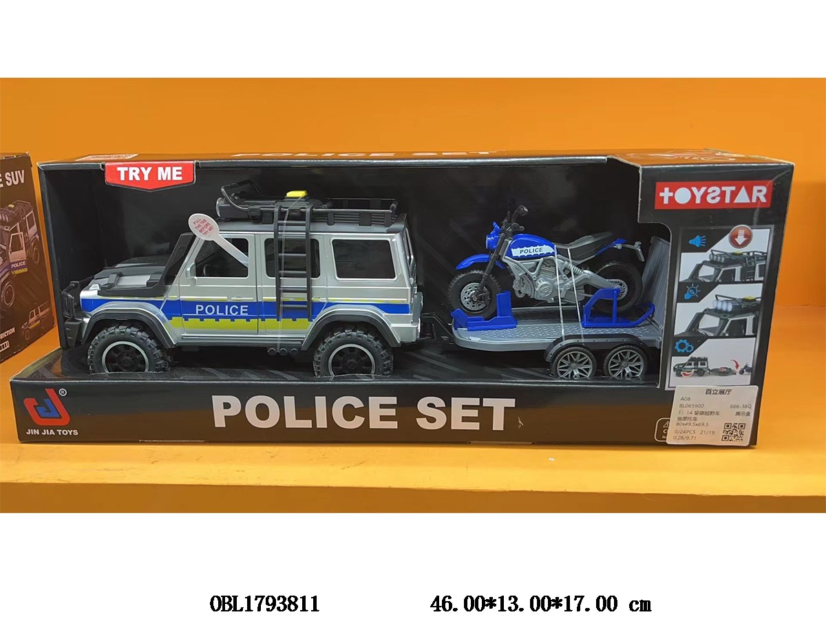 首页 > 惯性车 > 惯性越野车带灯光声音 拖摩托车 3*AG13包电