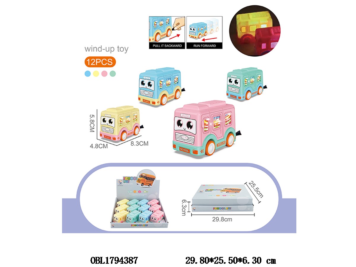 拉线校车带灯光 2*AG3包电 4色混装 12只装1展示盒