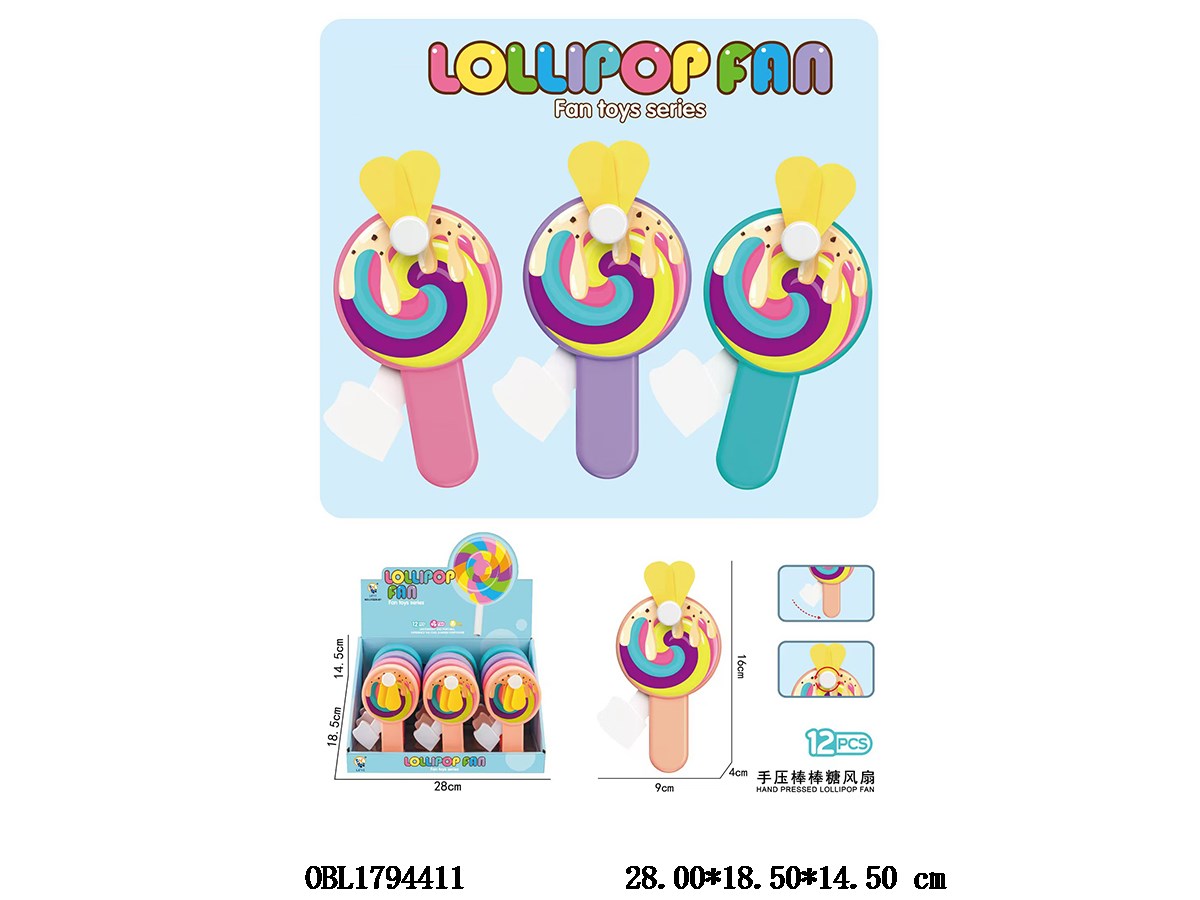 手压棒棒糖风扇 12支装一展示盒 4色混装