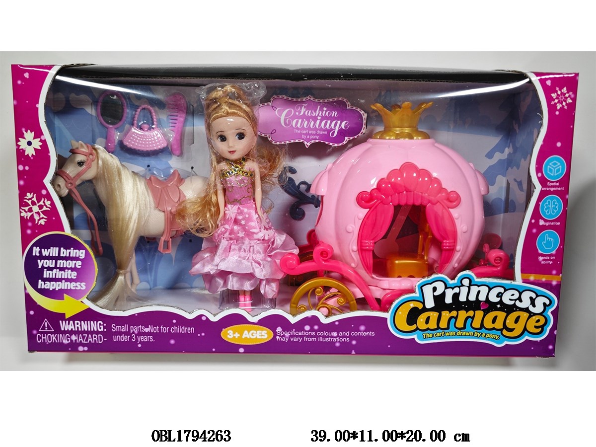 首页 > 马车 > 马车套装带灯光 配7寸实身芭芘 3*AG13包电 主体衣服一款一色