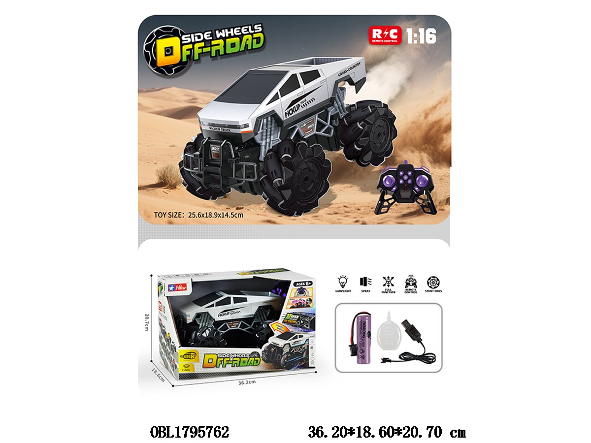 11通遥控特斯拉越野车带灯光音效喷雾 自动演示 配USB线 车身3.7V包电 遥控器2*AA无包电 2.4G