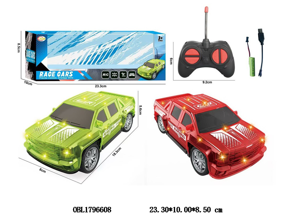 四通遥控透明车带灯光 配USB线 车身3.7V锂电池包电 遥控器2*AA不包电 27频率 2色混装