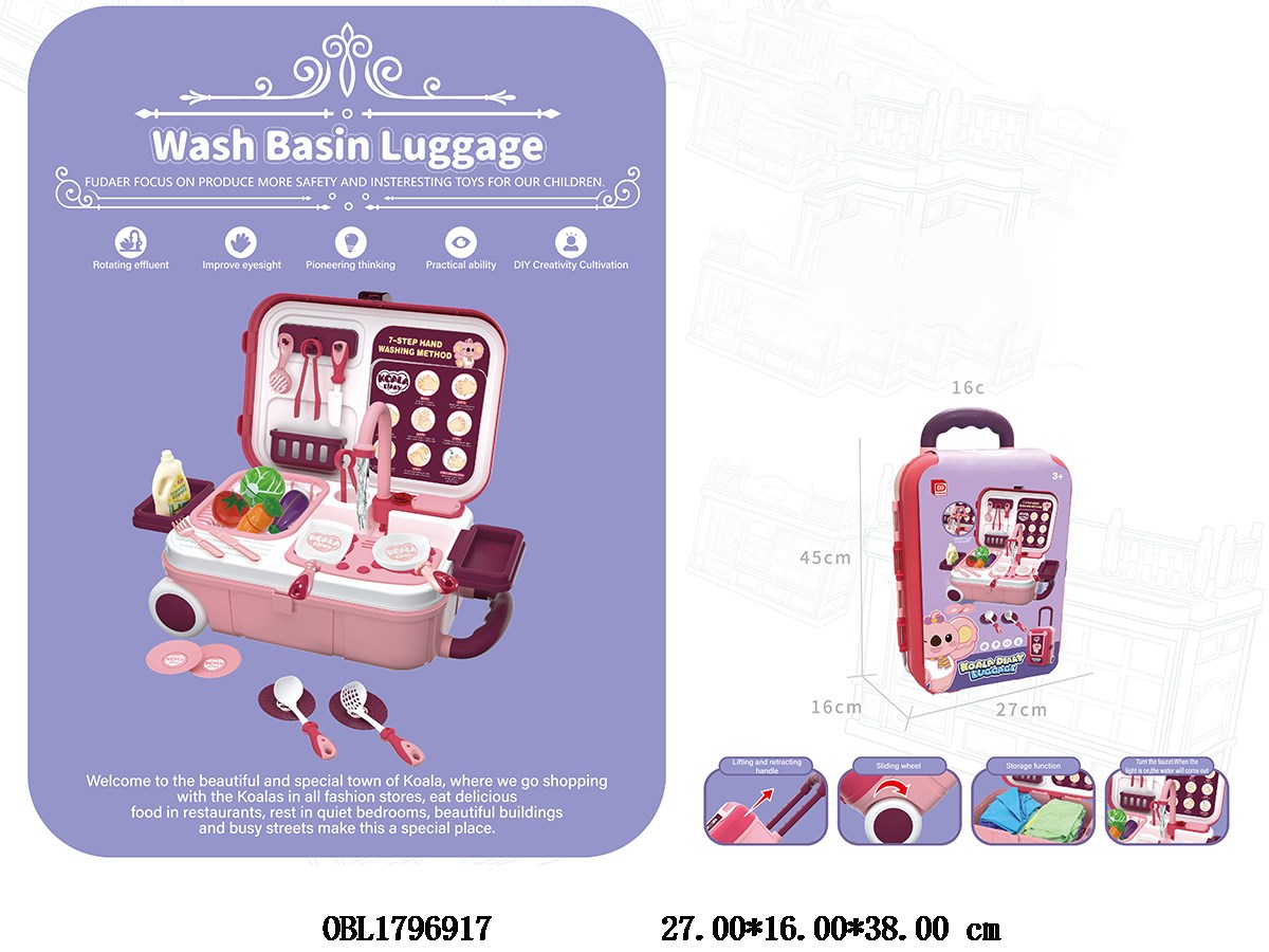 粉色电动洗手盆可切食物套装 自动出水 3*AAA无包电 拉杆箱