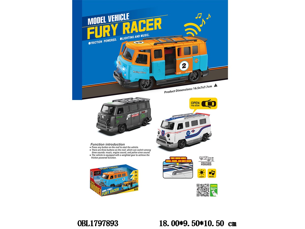 惯性改装面包车带灯光声音 可开门 2*AAA不包电 3色混装