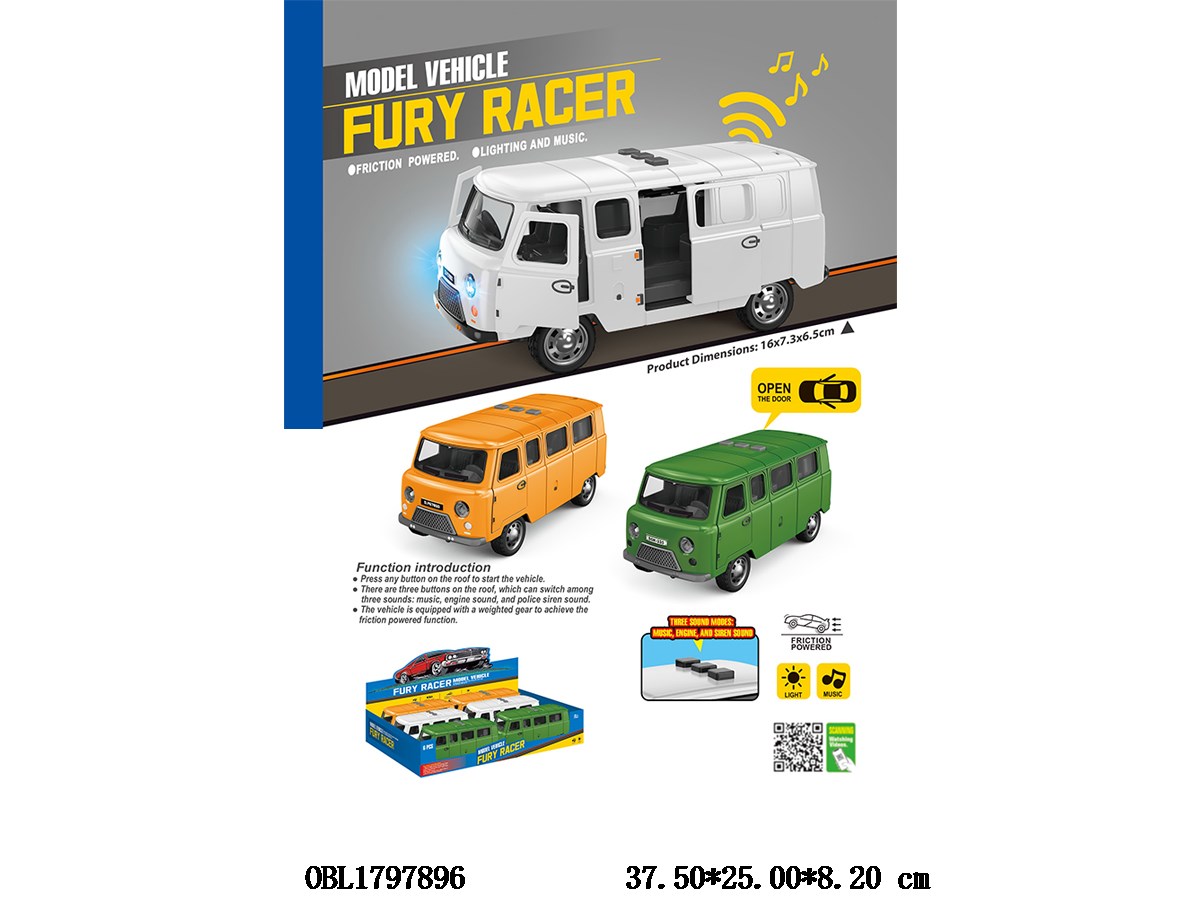 惯性面包车带灯光声音 可开门 2*AAA不包电 3色混装 6只装一展示盒
