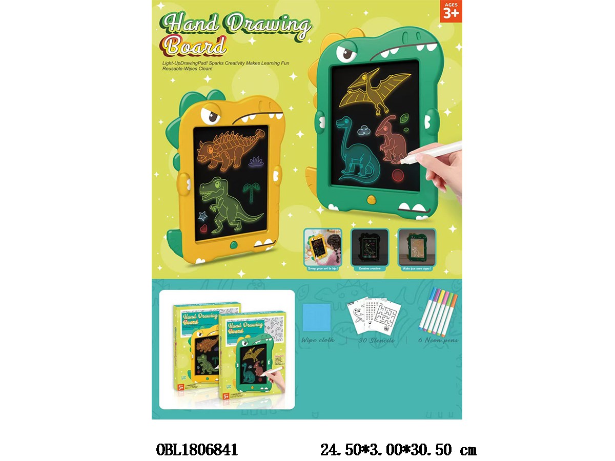 卡通恐龙荧光写字板带灯光 2*AA不包电 2色混装